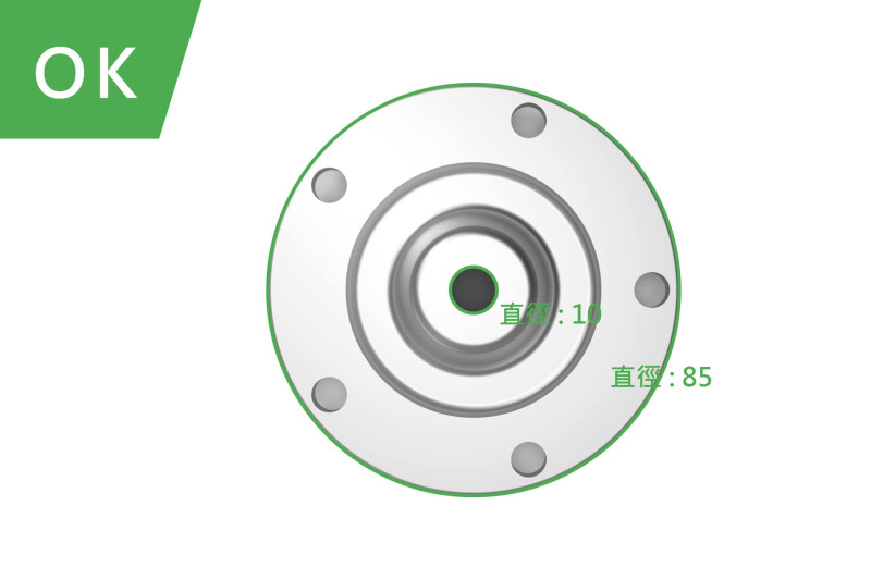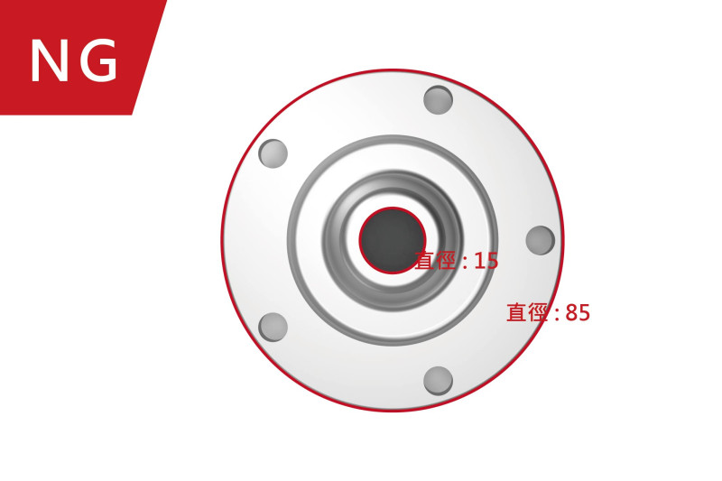 機械零件生產線上,對零件上的孔洞進行直徑量測和瑕疵判定。